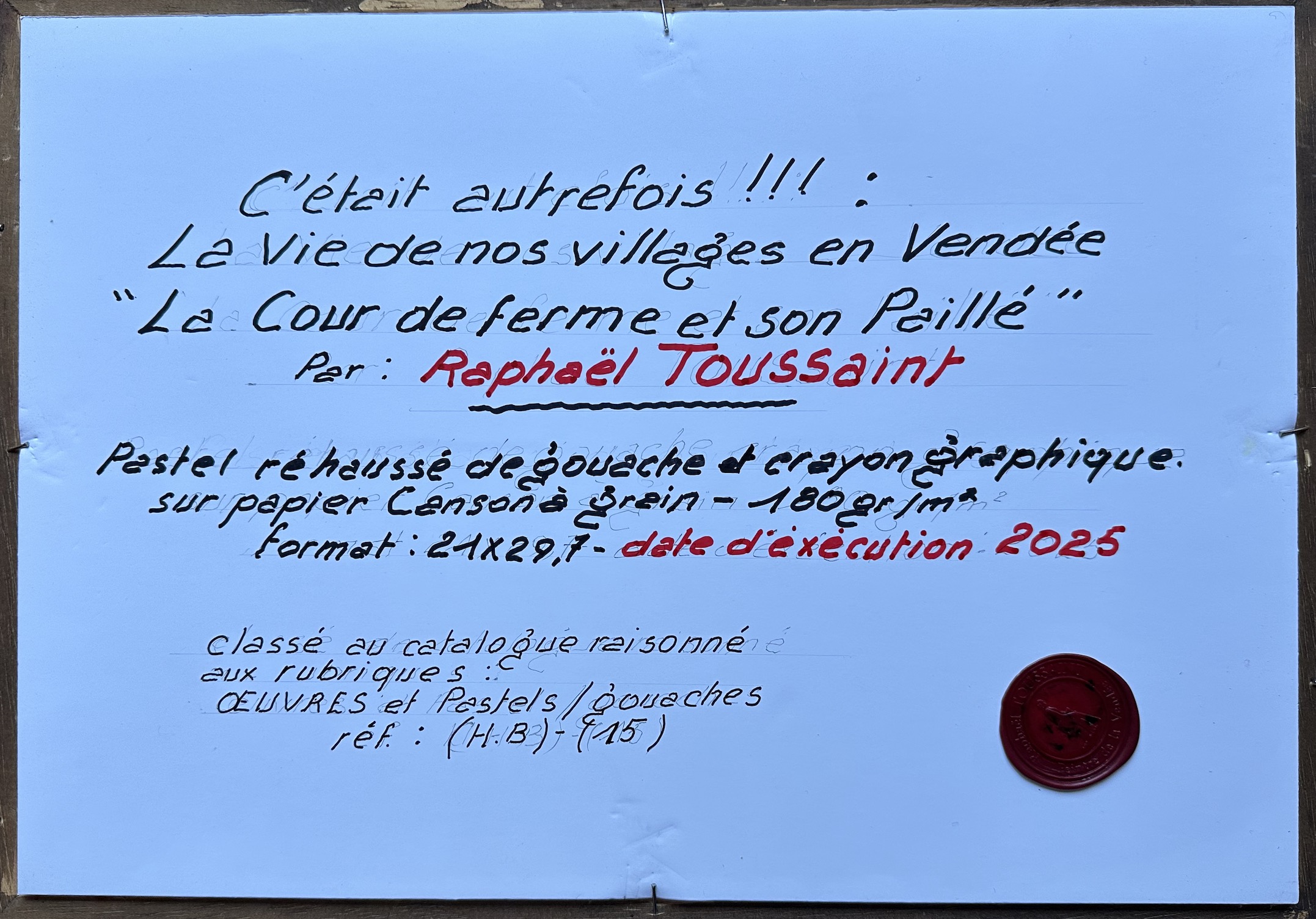sur feuille papier 100% coton, Grain fin, 300 gr – Daté 2023